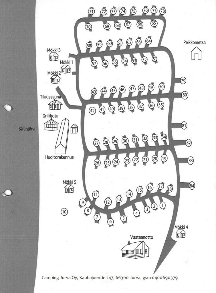 Camping Jurva sijaitsee mitä ihastuttavimmassa miljöössä Säläisjärven rannalla, vain muutaman kilometrin päässä Jurvan keskustasta. Mikä onkaan ihanampaa, kuin kuuman saunan tai hellepäivän jälkeen pulahtaa järveen virkistäytymään tai soudella veneellä kalastamaan kesäillan hämärtyessä.