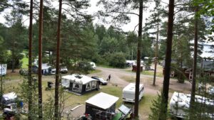 Alue kattaa 2 hehtaaria, tasaista hiekkapohjaista männikkö- ja heinäpeltoaluetta Rapojärven pohjoispuolella. 120 sähköistettyä vaunupaikkaa. Matala ja hiekkapohjainen ranta.