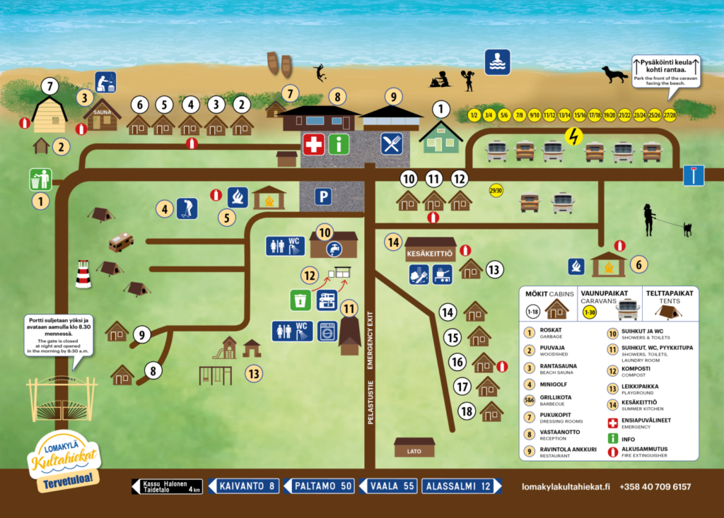 Majoittua voit viihtyisissä hirsimökeissä, Caravan-paikoilla hiekkarannalla tai nurmikentällä sekä telttapaikoilla. Saaresta löydät myös mm. Kassu Halonen taidetalon, Unescon suojelemat 2 700 miljoonaa vuotta vanhat ainutlaatuiset gneissikalliot sekä paljon muuta nähtävää.