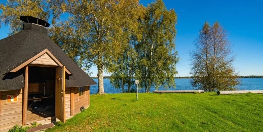 Saunasta voit pulahtaa vaivattomasti viilentävään Kemijokeen uimaan. Laituri sijaitsee grillikodan takana, jossa voi halutessaan paistaa makkaraa ja viettää aikaa.
