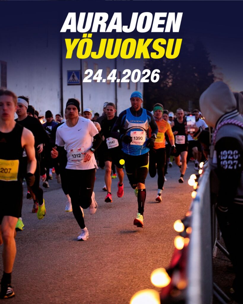 Juoksuaika 2026 alkaa Aurajoen Yöjuoksulla perjantaina 24.4.2026. Tervetuloa juoksemaan historialliseen Suomen Turkuun. Aurajoen Yöjuoksun tapahtuma-alue sijaitsee Turun linnan pihalla ja viiden kilometrin mittainen juoksureitti kulkee Aurajoen ympäristössä.