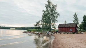 Loiva hiekkaranta. Uimarannalla on kaksi pukusuojaa ja käymälä. Kivenheiton päässä on vierasvenesatama kahviopalveluineen.