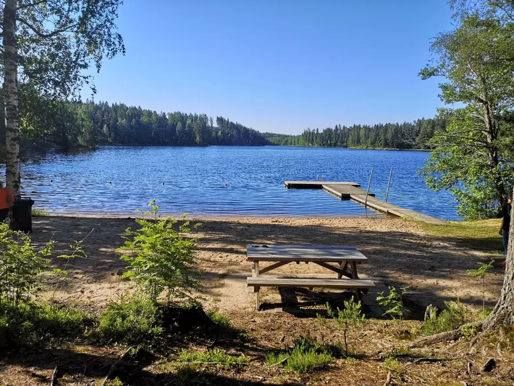 Laiturilla varustettu hiekkapohjainen uimapaikka. Rannalta löytyy pukukopit naisille ja miehille. Rannalla wc.